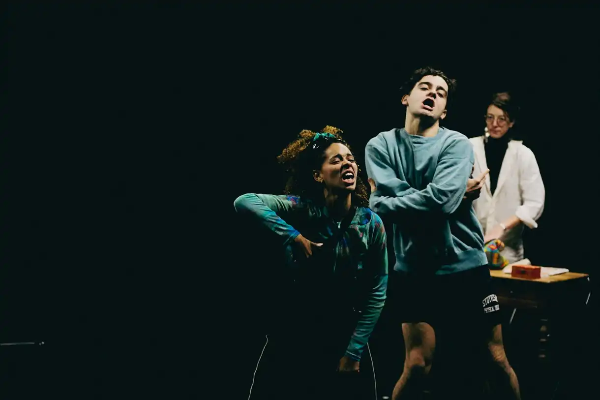 La pièce navigue avec une superbe dextérité entre scènes de classe, rires et clashes entre adolescents, amours naissantes et confrontations. Le récit narratif est entrecoupé, de manière étonnamment fluide et naturelle, par des chansons et des danses sur musique rap, des moments surréalistes et oniriques (la télépathie impulsée en voix off par Yulizh, mémorable !), des interactions avec le public comme dans un stand-up et des témoignages personnels particulièrement poignants. La langue est manifestement celle d'ados qui ne viennent pas des beaux quartiers, encore que... Ça crie, ça parle vite, c'est souvent cru et sans doute réaliste, même si la comédie porte un peu à l'excès. Quoi qu'il en soit, on reste confondus par l'aisance de jeu des comédiens, parfaitement dirigés par Igor Kovalsky. On rit beaucoup aux dialogues pleins d'esprit, mais le rire est inquiet. Le résultat : 1 h 15 de tourbillon comique et émotionnel qui fait réfléchir durablement à des sujets brûlants : l'éveil des jeunes, le difficile passage à l'âge adulte, la souffrance des enseignants.